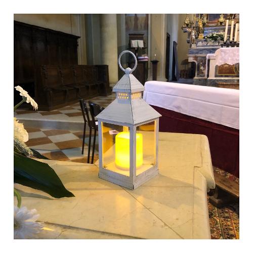 Lanterna (10x10x24cm) con candela Led Bianco antico 35812