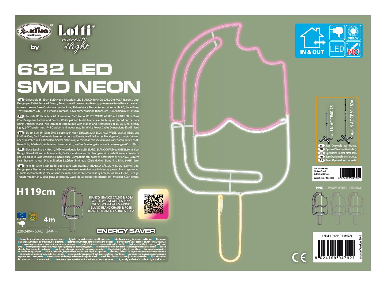 ESTIVA Ghiacciolo Sagoma luminosa Bianco e Fucsia (60x120cm) 47938