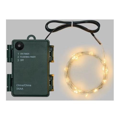 Catena lineare 8m 80 microled bianco caldo ø1,5mm, cavo metallo argento metal silver, memory controller integrato nel porta batterie luce fissa + 7 giochi di luce selezionabili + off, timer on-off 8-16 ore, a batteria 3xaa 1,5v, ip44 uso esterno e interno portatile, dimensioni 8m, scatola pvc color ed espositore pdq try me (xkc art. M80s-c t 3aa pdq).