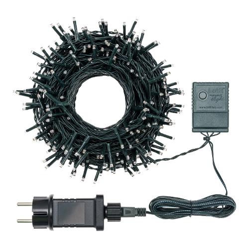 Catena lineare tlg 360 miniled traditional ø3mm reflex, timer memory controller 8 giochi di luce selezionabili con timer on-off 8-16 ore disinseribile tramite pulsante luminoso, uso esterno, cavo verde, dimensioni 4+25,7m,