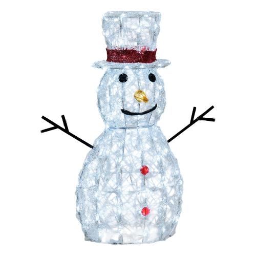 Pupazzo di Neve Snowman 3D H70cm Acrilico Morbido 160 Dual LED BIANCO CALDO + BIANCO ø5mm, 3 COLORI selezionabili a Luce Fissa Caldo / Freddo / Mixed, SFN Soft Acrylic Net, Telaio metallo verniciato Bianco, Trasformatore SELV di Sicurezza con Timer Giornaliero 8 ore On (16 ore Off) disinseribile tramite Pulsante Luminoso, IP44 uso Esterno e Interno, Cavo Alimentazione Trasparente 4m, Dimensioni H70cm