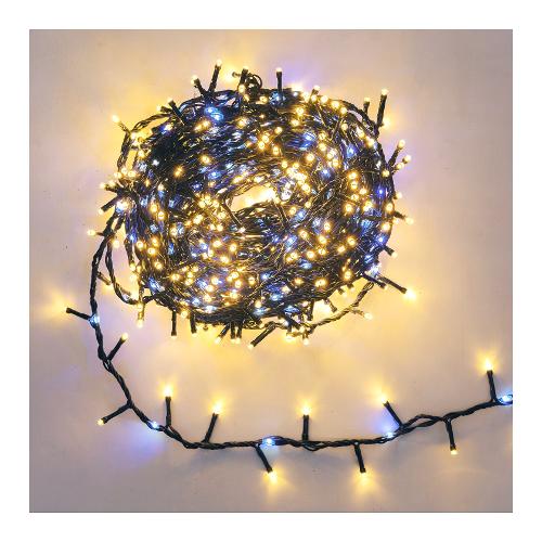 Catena 30m nastro minicluster ø6cm sfl starfall light steady + chasing 1660 led bianco caldo e bianco, 1000 led b.caldo ø5mm reflex a luce fissa + 660 smd led b.freddo con memory controller luce fissa + effetto rincorsa a 7 velocità, timer giornaliero 8 ore on (16 ore off) disinseribile tramite pulsante luminoso 3 funzioni on-timer-off integrato nel trasformatore selv di sicurezza, ip44 uso esterno e interno