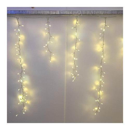 Ice cluster light 340xh80cm 18 stringhe ø6cm sfl starfall light steady + chasing 576 led bianco caldo, 384 led b.caldo ø5mm reflex a luce fissa + 192 smd led b.caldo con memory controller luce fissa + effetto rincorsa a 7 velocità, timer giornaliero 8 ore on (16 ore off) disinseribile tramite pulsante luminoso 3 funzioni on-timer-off integrato nel trasformatore selv di sicurezza, ip44 uso esterno e interno