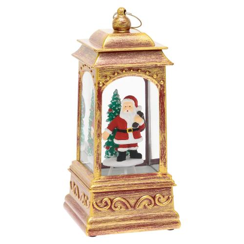 Lanterna rettangolare h20,5cm plastica antique red rosso antico oro glitter led bianco caldo, effetto luminoso scintillante con glitter illuminato nell acqua in movimento all interno della decorazione, a batteria 3xaa 1,5v, porta batterie integrato sotto la base, interruttore levetta on-off, predisposizione per alimentazione con trasformatore opzionale