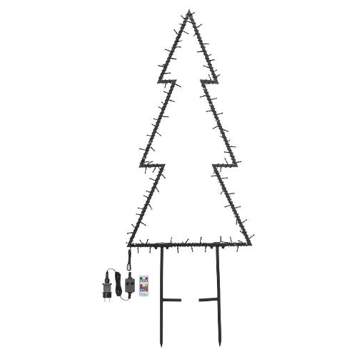 Albero Natale Abete H105cm GMD WONDER Multiuso 110 LED SuperBright ø5mm, 8 COLORI x 6 giochi di luce (48 effetti luminosi inclusi Bianco Caldo e Luce Fissa) Controller 2 pulsanti Steady/Functions o Telecomando RF 13 Pulsanti, Timer 6 ore On (18 ore Off) disinseribile, Telaio metallo Nero con picchetti da giardino H45cm removibili, Multiuso per Giardino o da Appendere, Trasformatore, IP44 uso Esterno, Cavo Alim. Nero 4m, Dim. 55xH45+105cm