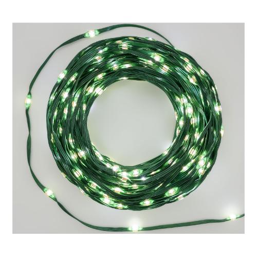 Catena lineare 15m mtl 200 gocce di luce led 360° bianco ø4mm, led high brightness alta luminosità a 360° , memory controller luce fissa + 7 giochi luce selezionabili con timer 8 ore on 16 ore off disinseribile tramite pulsante luminoso integrato nel trasformatore bassa tensione di sicurezza, ip44 uso esterno e interno