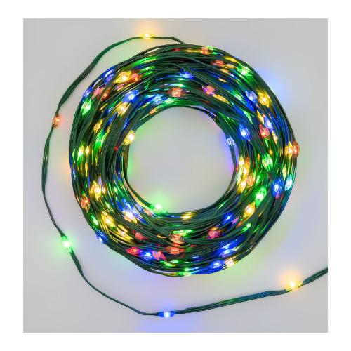 Catena lineare 15m mtl 200 gocce di luce led 360° multicolor ø4mm, led high brightness alta luminosità a 360° , memory controller luce fissa + 7 giochi luce selezionabili con timer 8 ore on 16 ore off disinseribile tramite pulsante luminoso integrato nel trasformatore bassa tensione di sicurezza, ip44 uso esterno e interno
