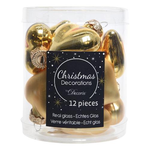 Kaemingk Set palline albero Natale (12pz-4cm) Vetro Cuori Gold 010183