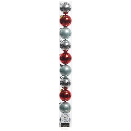 Set palline albero Natale (10pz-6cm) Assortito Silver, Red e Verde 020397