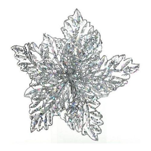 Poinsettia Con clip (23,5x10cm) Silver glitterato 629069