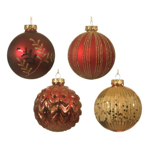 Kaemingk Pallina albero Natale (1pz-8cm) Vetro Assortito Red e Gold 062581