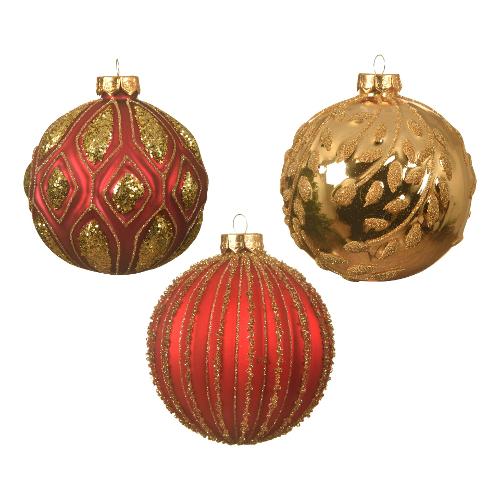 Kaemingk Pallina albero Natale (1pz-10cm) Vetro Assortito Red e Gold 062603