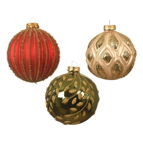 Kaemingk Pallina albero Natale (1pz-10cm) Vetro Assortito Green red 062609