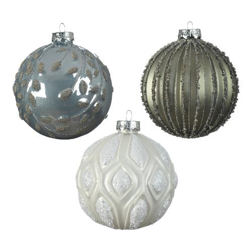 Kaemingk Pallina albero Natale (1pz-10cm) Vetro Assortito Misty blue 062612
