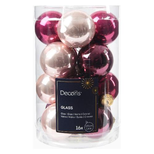 Set palline albero Natale (16pz-3,5cm) Vetro Pink 013463