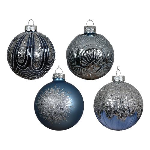 Kaemingk Pallina albero Natale (1pz-8cm) Vetro Assortito Blue 062675