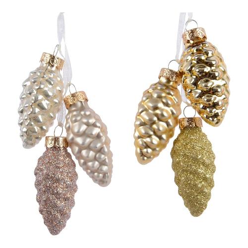 Pigne (3pz-2,5cm) Vetro Assortito Pearl e Gold 121179