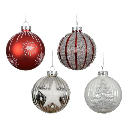 Kaemingk Pallina albero Natale (1pz-8cm) Vetro Assortito Red silver 062864