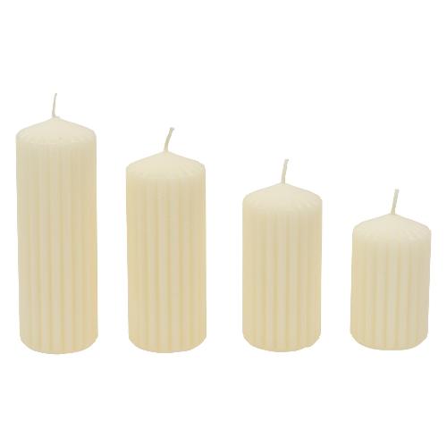 Set candele cilindriche rigate composto da: candela d.5x8hcm; candela 5x10h cm; candela 5x12h cm; candela 5x14h cm