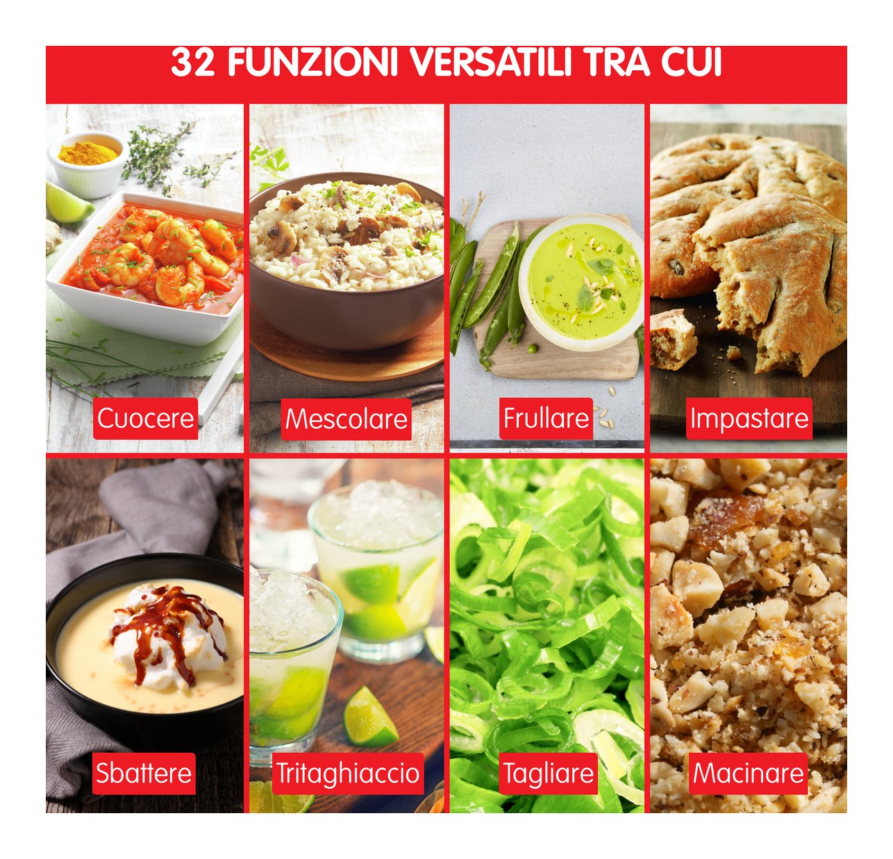 Il robot da cucina per cucinare 600 ricette integrate che ti guidano passo dopo passo attraverso il suo touch screen da 7 pollici. Inoltre, la sua generosa capacità è l'ideale per cucinare per amici o familiari e grazie alle sue 32 funzioni, 10 programmi automatici e 6 accessori inclusi renderanno la cucina divertente, sana, facile e veloce.