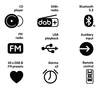 Questo sistema compatto offre un'esperienza audio ricca e versatile, perfetto per mensole, piani di lavoro o comodini. Risveglia la tua collezione di CD, riproduci in streaming le tue playlist preferite o sintonizzati sulla radio con facilità. Comandi intuitivi, un display a colori vivaci e una raffinata finitura in legno combinano funzionalità e design elegante, aggiungendo suono e stile alla tua casa.