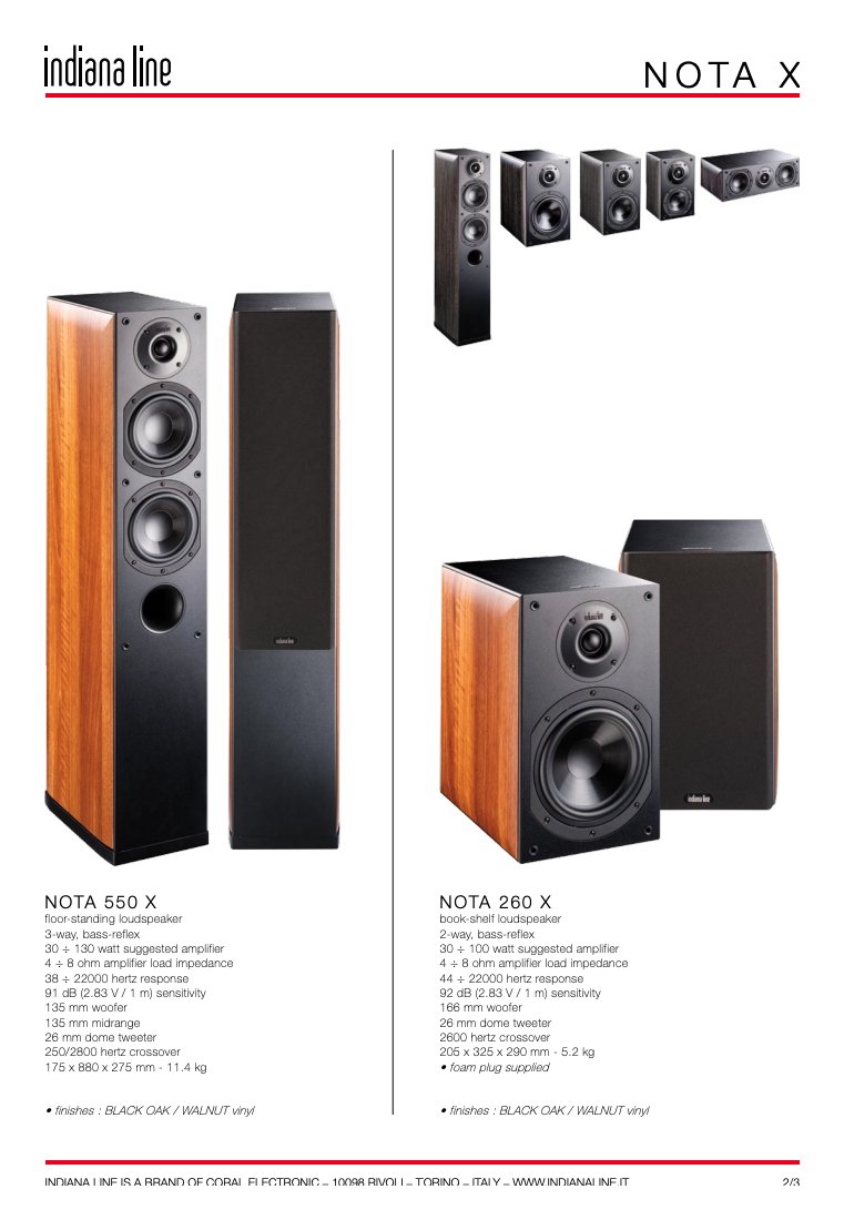 Diffusore acustico da pavimento equipaggiato con woofer e medio basso da cinque pollici con cono in polipropilene iniettato e tweeter al neodimio con cupola in seta trattata e camera di risonanza posteriore a ventilazione radiale. Sono notevoli la capacità dinamica e la quantità di basse frequenze.
