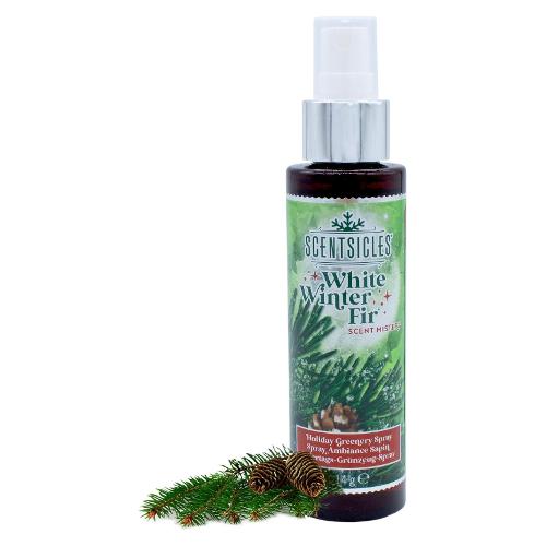 Profumo spray per composizioni secche natalizie o alberi di natale artificiali con fragranza "abete d'inverno bianco". Profumo di lunga durata fino a 30 giorni.