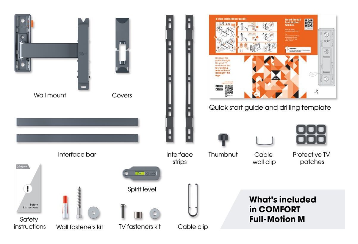 Con l’elegante supporto a parete per TV COMFORT FullMotion scegli sicurezza, design e comfort di visione.