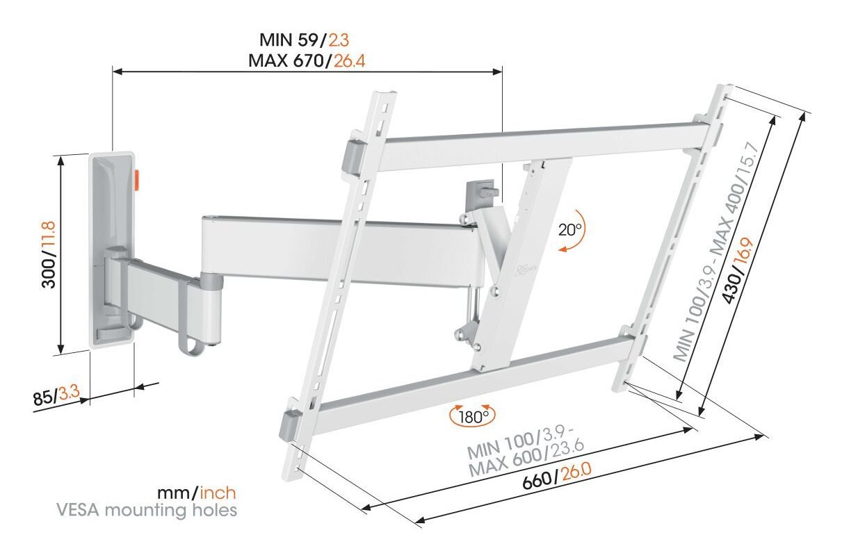 Supporto monitor TV parete ( 35 Kg ) VESA 600 x 400 COMFORT Full motion+ White TVM 3643 W