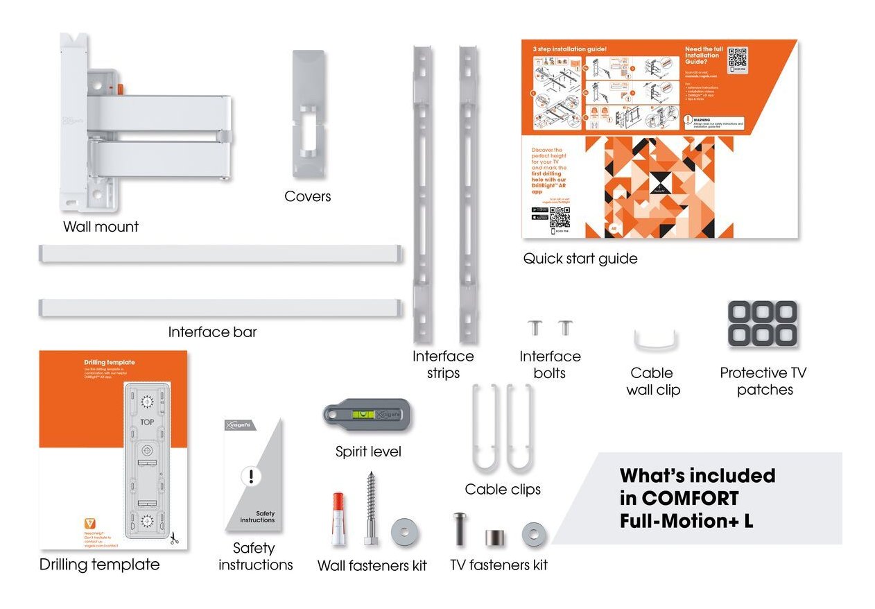 Con l’elegante supporto a parete per TV COMFORT Full-Motion+, puoi goderti al massimo la tua TV di grandi dimensioni. Questo supporto a parete può ruotare fino a 180° e inclinarsi fino a 20°, per un comfort di visione ottimale. È progettato per l'uso intensivo, quindi è ideale per le famiglie con bambini. È garantito che la tua TV sia montata in modo sicuro. Il supporto a parete è adatto a TV da 40 a 77 pollici con peso fino a 35 kg.
