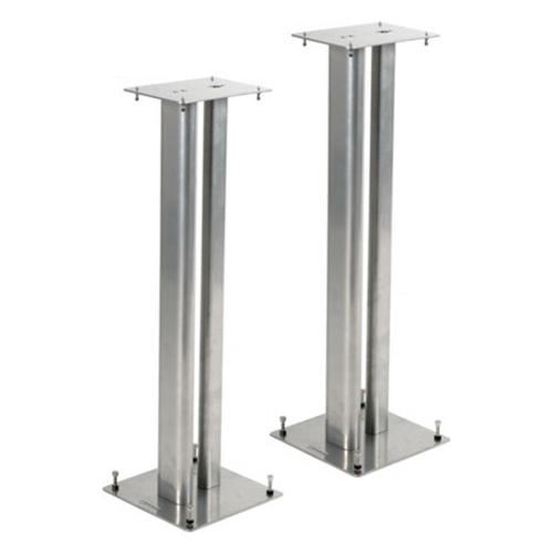 Supporti per monitor audio da studio ad altezza fissa composti da due profili verticali in acciaio. Un profilo può essere riempito di sabbia o pallini di piombo per aumentare la stabilità del supporto ed annullare le risonanze, l'altro invece funge da passacavo per un'estetica piacevole in studio e in ambiente domestico.