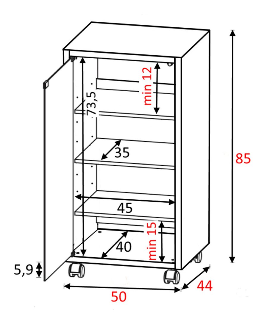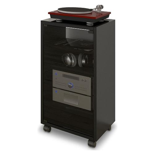 Mobile HI-FI e porta TV con anta reversibile, 3 ripiani regolabili in altezza e 4 ruote pivotanti. L’anta Active Door, con apertura push pull in vetro temperato Grigio Europa (fumè), permette l’input del telecomando degli apparecchi posizionati all’interno.