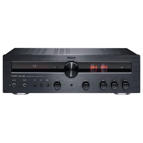 Il sintoamplificatore stereo MR 780 segue l'esclusivo concetto ibrido Magnat: nello stadio di preamplificatore operano due valvole ECC 81 selezionate e bruciate, che forniscono all'intero sistema i suoni caldi e audiofili così acclamati dagli appassionati di hi-fi.