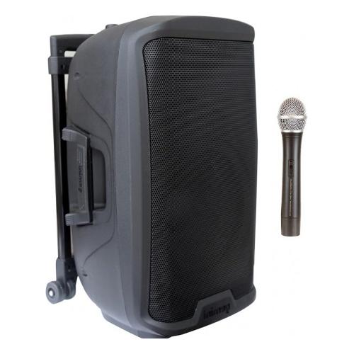 Per la massima comodità di viaggio, questi altoparlanti sono dotati di maniglie e ruote. Radiomicrofono UHF 863-865 MHz in dotazione.