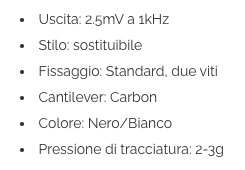 Testina giradischi CARBON Standard White e Black Magnete mobile