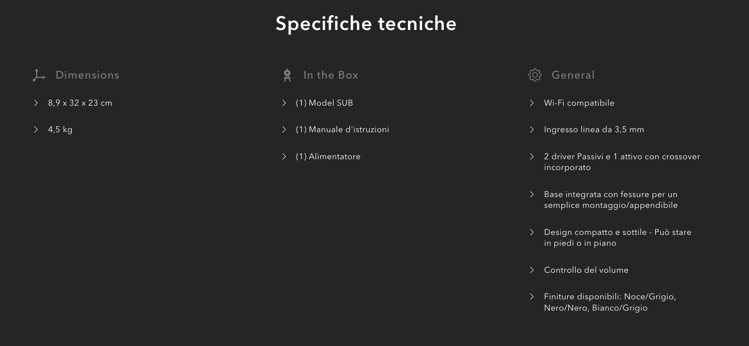 Il design dinamico del Model SUB con 2 driver passivi ed uno attivo con crossover integrato migliora la tua esperienza di ascolto fornendo un supporto per le basse frequenze, bilanciando così il suono in modo più chiaro e dinamico.
