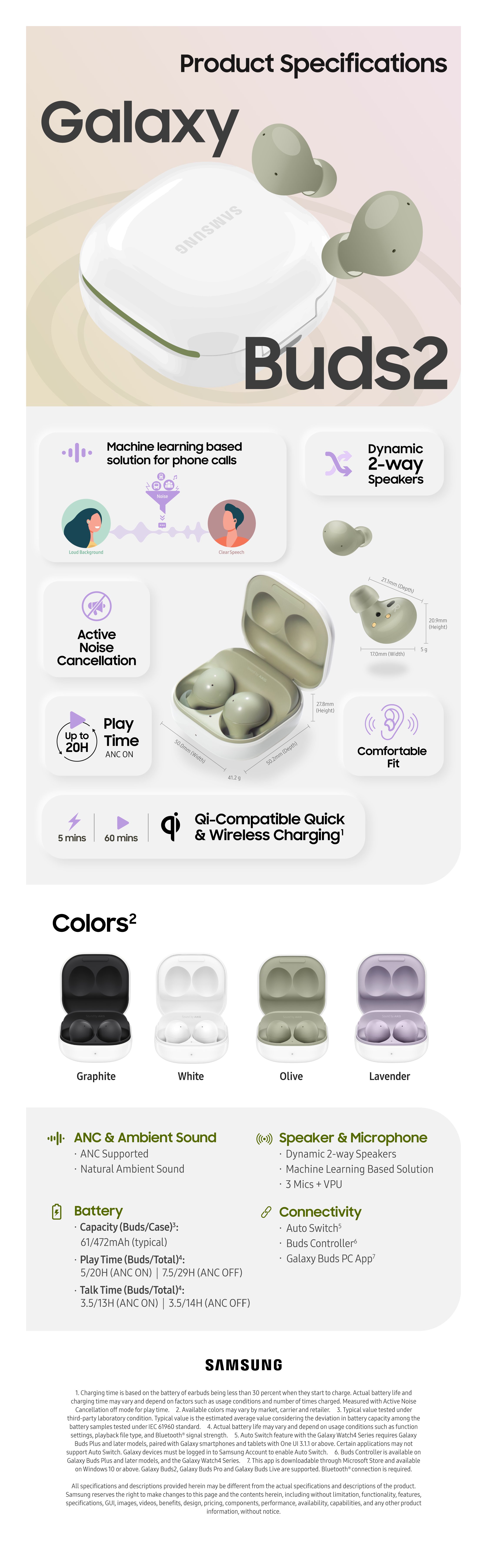 Perditi in ciò che ami. Galaxy Buds2 ti apre un nuovo mondo di esperienza sonora grazie all’audio ben bilanciato, a un’ergonomia ineguagliabile, all’ANC e alla connettività fluida per il tuo telefono e il tuo orologio. Un controllo più facile e un feedback migliore ti consentono di immergerti nel tuo mondo mentre fai esercizi, nel gaming, oppure mentre ascolti il tuo brano preferito.