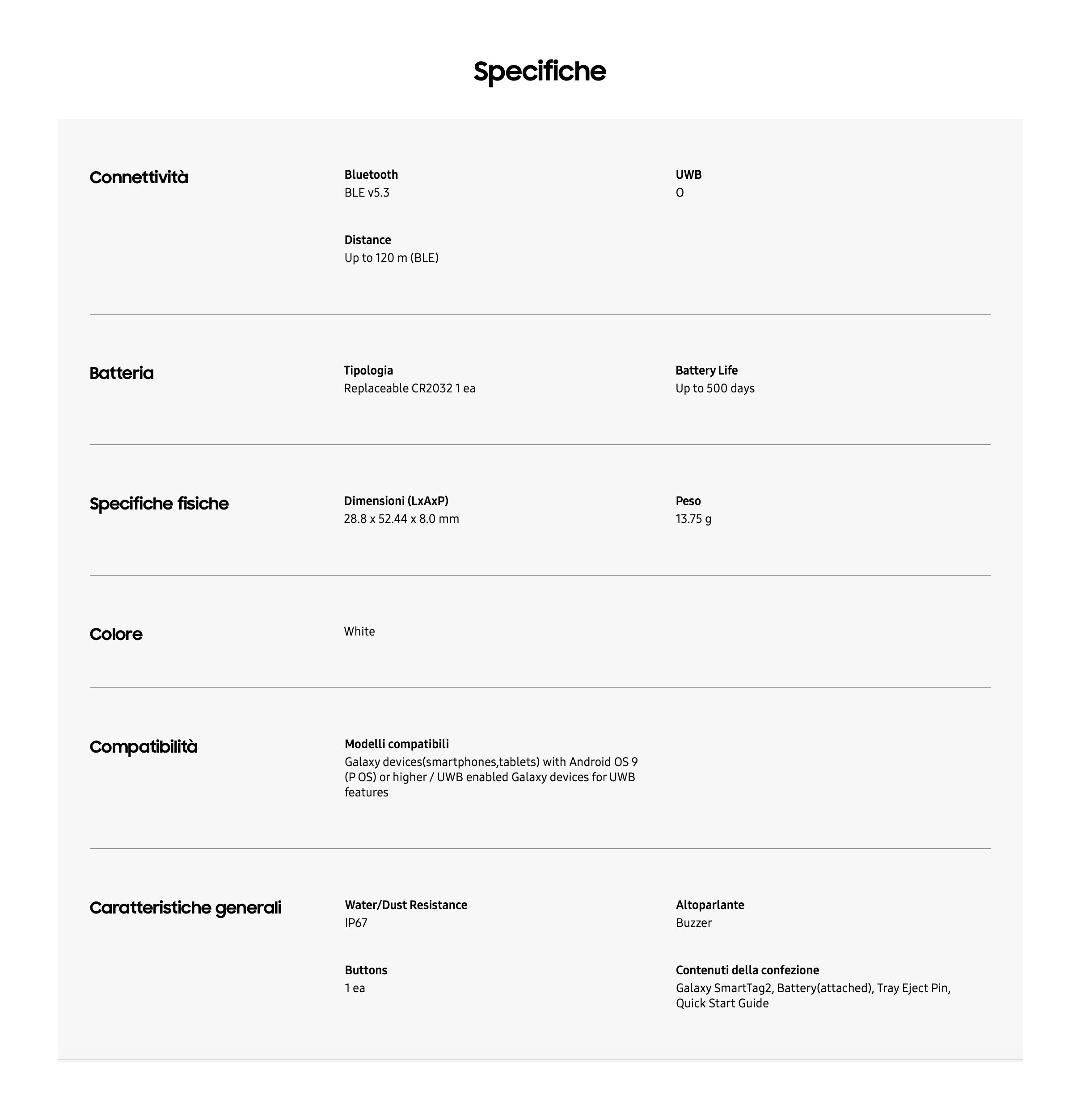 Samsung Smart tracker GALAXY SMARTAG2 1 Pezzo White EI T5600BWEGEU