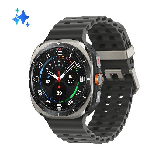 Ti diamo il benvenuto nell’era della salute supportata dall’AI. Progettato per accompagnarti in ogni avventura, Galaxy Watch Ultra sopporta temperature fino a 55 °C, resiste fino a quota 9.000 m ed è impermeabile fino a una pressione di 10 ATM. Grazie al potente processore a 3 nm non rallenta in nessuna condizione. Fai trekking per giorni con un’autonomia massima di 100 ore in modalità Power saving. Il nuovo BioActive Sensor monitora i tuoi parametri, mentre Galaxy AI li traduce in dati per aiutarti a raggiungere i tuoi obiettivi.