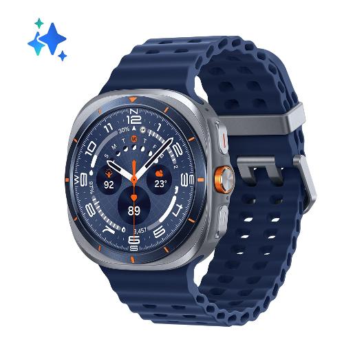 Galaxy Watch Ultra ha un quadrante da 47mm, una cassa in titanio di grado aerospaziale e un resistente cinturino in gomma. Un look da orologio classico che cattura gli sguardi, ma con marcati tratti da orologio sportivo.