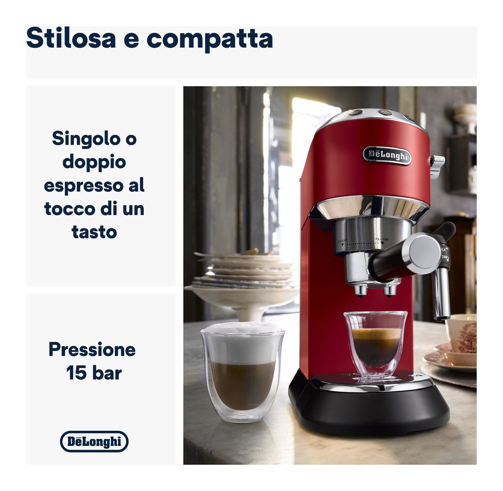 Riservati del tempo per creare la tua bevanda preferita: da un espresso armonioso, a un cappuccino con una cremosa schiuma o perfino un semplice latte caldo. Grazie a Dedica potrai replicare i gesti dell'abile barista per poter portare a casa tua la tua bevanda preferita.