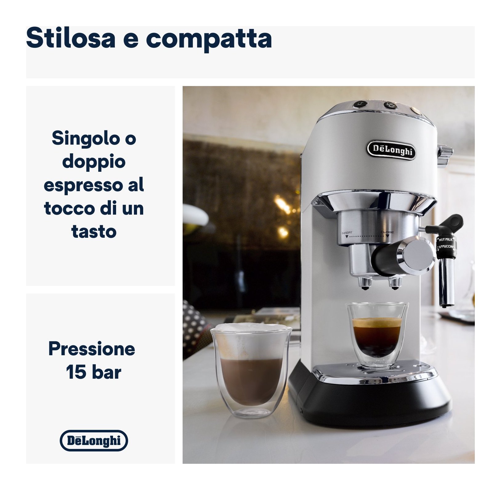 Riservati del tempo per creare la tua bevanda preferita: da un espresso armonioso, a un cappuccino con una cremosa schiuma o perfino un semplice latte caldo. Grazie a Dedica potrai replicare i gesti dell'abile barista per poter portare a casa tua la tua bevanda preferita.