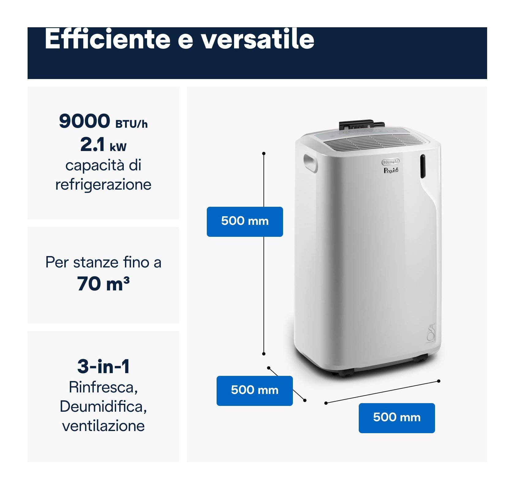 Raffredda la tua casa in modo efficiente con il climatizzatore portatile ecologico De'Longhi. Perfetto per mantenere la casa fresca durante i giorni più caldi e ottimo per una palestra domestica. Dispone di una funzione di deumidificazione, timer 24 ore e tre impostazioni di velocità.