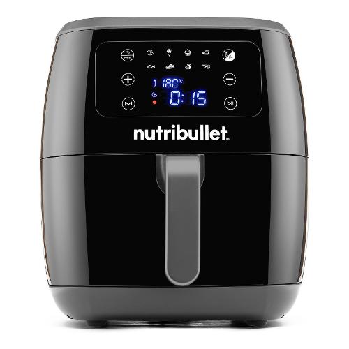 Nuova friggitrice ad aria nutribullet XXL; la potente friggitrice ad aria da 1800W, un design moderno e un'ampia capienza del cestello da 7 litri che permette di cuocere 1,4kg di patatine fritte. Convezione a 360 gradi per una cottura croccante utilizzando pochissimo olio; schermo touch con 8 programmi di cottura. Facile da pulire con cestello e piatto per cotture croccanti entrambi lavabili in lavastoviglie.