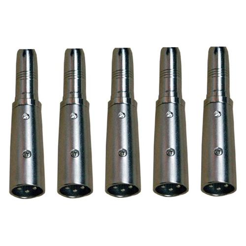Busta con 5 adattatori Audio con connettori XLR Maschio / Jack 6,3 mm femmina. La confezione contiene 5 pezzi