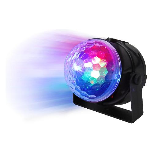 Di ridotte dimensioni, possiede una staffa per il fissaggio a tralicci o ad altre strutture. Il peso contenuto lo rende idoneo a qualsiasi tipo di installazione. Al suo interno possiede 3 led da 1W per la generazione di raggi luminosi colorati in continuo movimento. La vita media dei led è di 20.000 ore con funzione energy saving fino al 80%