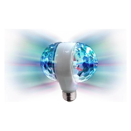 Effetto luce semplice ed economico ma dalla straordinaria resa. E' composto da due semisfere contrapposte, ognuna con 3 led che producono altrettanti colori per raggi particolarmente intensi. Il risultato è un effetto luce in movimento con copertura di 360°. E' sufficiente inserirla in una normale presa E27 per lampadina e sarà pronta all'uso.