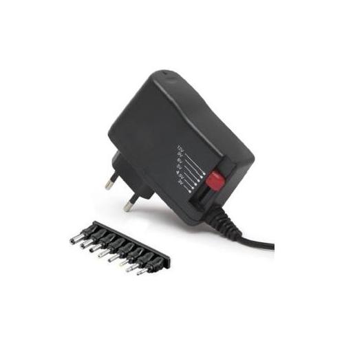 Alimentatore da 600mA operante in automatico sia a 110V che a 220V. Otto adattatori inclusi per ogni tipo di apparecchio. I voltaggi supportati sono: 3 / 4,5 / 5 / 6 / 9 e 12V. Ideale per l’impiego in abbinamento a lettori DVD portatili, lettori Mp3 etc.