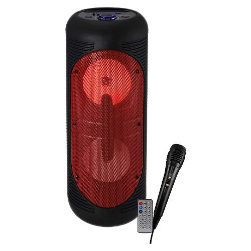 Diffusore amplificato con doppio woofer ideato sia per l'ascolto di musica sia per dilettarsi nel Karaoke in compagnia.