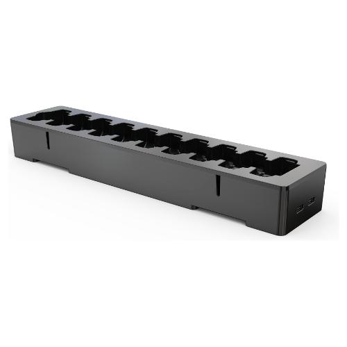 Consente di ricaricare contemporaneamente fino a 10 unità TG 10 (trasmittenti o riceventi). E' sufficiente collegarlo ad una presa USB tramite cavo Type-C e inserire le unità negli slot. L'aggancio è di tipo magnetico e risulta quindi guidato ed estremamente comodo. Il caricatore possiede una seconda presa Type C per il collegamento a cascata di un altro caricatore, permettendo quindi di caricare in contemporanea multipli di 10 unità. Il peso irrisorio e le dimensioni contenute permettono di trasportalo agevolmente.